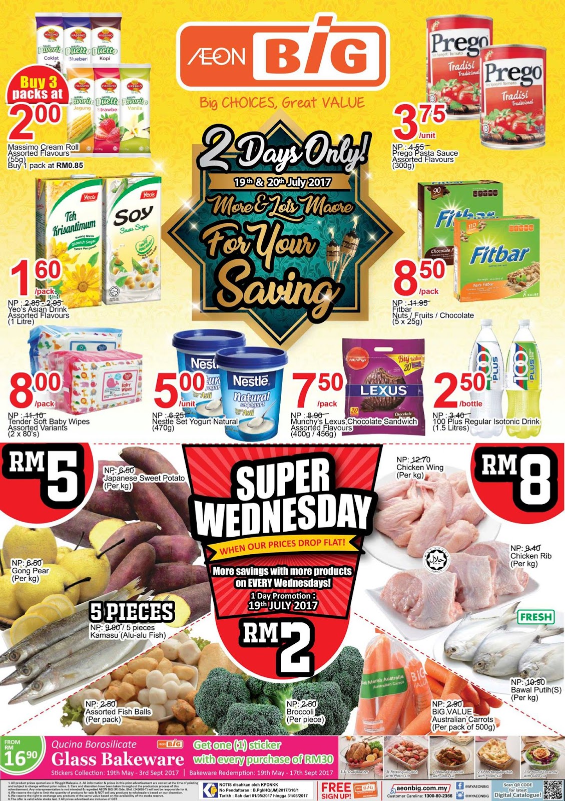 Never have a dull Wednesday with us! With our 2-days Special Promo and Super Wednesday, you can get great products like 1.5L 100Plus Regular Isotonik Drink for RM2.50/bottle from our 2-days Special Promo, Japanese Sweet Potatoes for RM5/kg from our Super Wednesday Promo and many more at great prices! Visit us today at AEON BiG!Link to AEON BiG Catalogue Promo