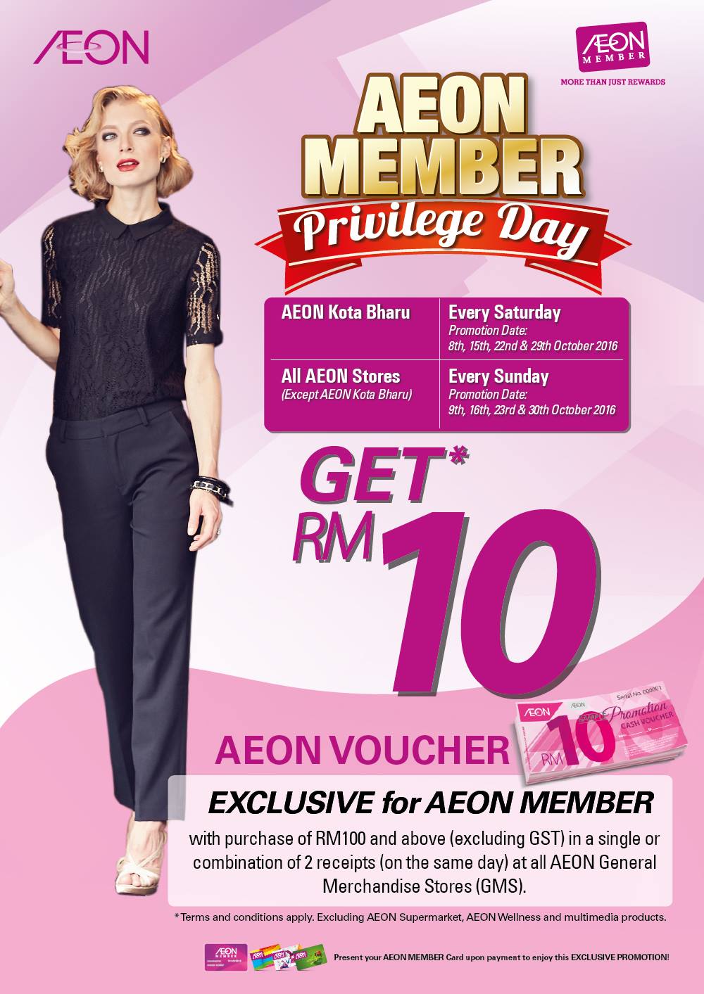 * Terms and Conditions apply. * Not valid for purchase at AEON Supermarket, AEON Wellness and multimedia products.
