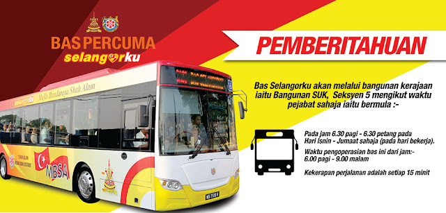 For public information, Bas Selangorku going through the government building of the Secretariat Building, Section 5 by a certain time only, starting at 6.30 am to 6.30 pm Monday to Friday only (weekdays). On Saturday and Sunday, Selangor Bus service not through the route to Secretariat Building, Section 5.