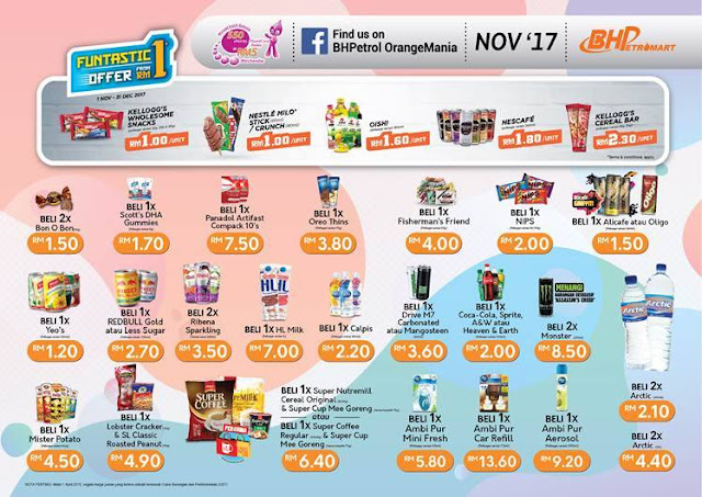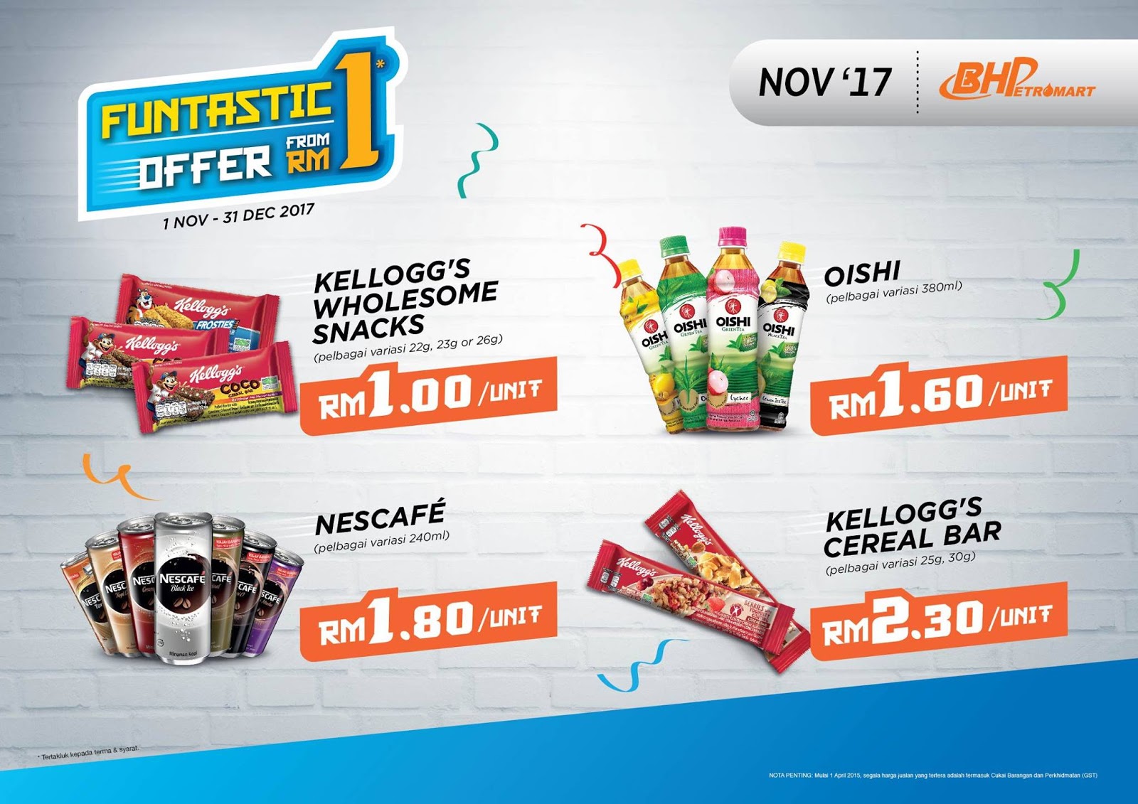 Exciting monthly best buys at all BHPetroMarts. Funtastic Offer from RM1 Promotion! Valid from 1 November - 31 December 2017 Link