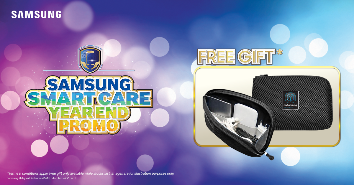 Get your Samsung device protected with Samsung Smart Care. Purchase now and get a complimentary electronic accessories organizer bag. Available until 30th January 2017, while stock lasts.Get your Samsung device protected with Samsung Smart Care. Purchase now and get a complimentary electronic accessories organiser bag. Available from 22 December 2016 until 30 January 2017, while stock lasts.