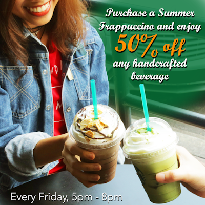 Buy Starbucks Summer Frappuccino Get 50% OFF Any Handcrafted Beverage 5PM - 8PM Fridays Until 28 July 2017