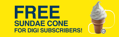 Back by popular demand! Enjoy a FREE Vanilla Sundae Cone! All you need to do is SMS MCD to 20000 and flash the reply SMS at any McDonald's from 19-21 Aug. Only one per Digi Subscriber.Remember to share your moment by posting your ice-cream selfies with #DigiRewards.