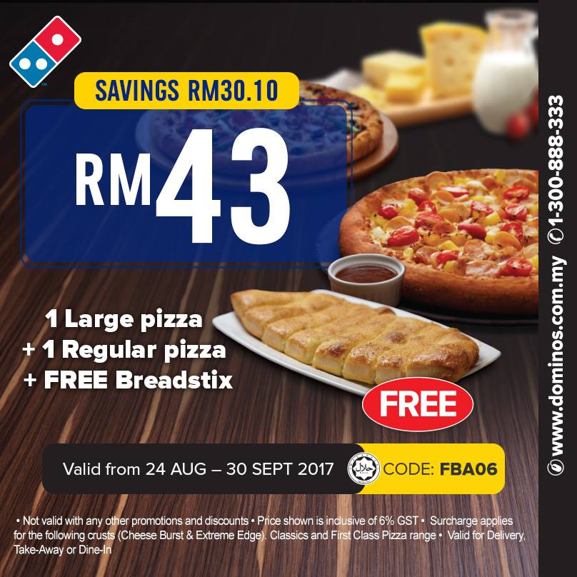 | Kod kupon: FBA06 1 Piza Besar + 1 Piza Sederhana + Breadstix PER… |
