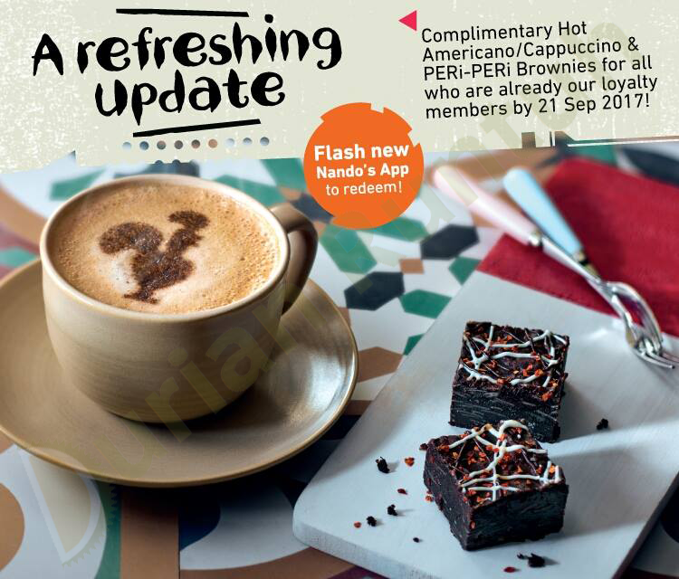 - Complimentary Hot Americano / Cappuccino & PERi-PERi Brownies are only eligible for members who are registered before 21 September 2017.