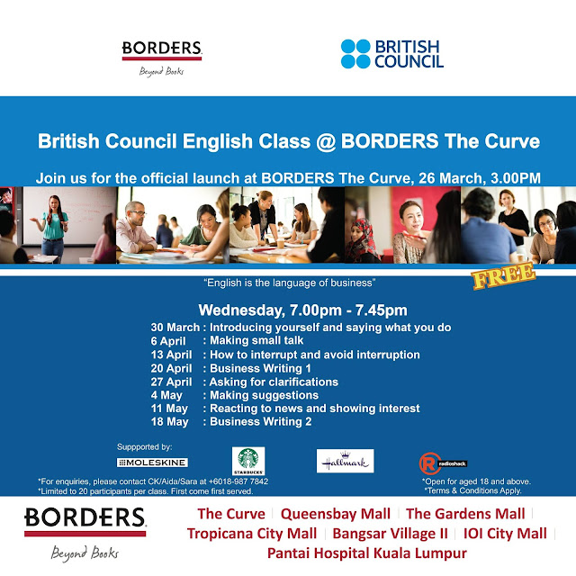 There has been a lot of talk in recent years about the fact that many Malaysians lack sufficient English skills to succeed in the workplace. Typical problems that many Malaysians may experience include not having the confidence to express their opinions or take part in discussions and not being able to compose clear, easy-to-understand emails at work. In some cases, a lack of proficiency in English means that young people are missing out on new employment opportunities or promotions despite otherwise having high level qualifications.The British Council is globally committed to improving English levels to help people achieve their work and study goals, and Borders are concerned about the declining levels of English in Malaysia. To try to address this, the two organisations have decided to work together to both raise awareness and offer people the opportunity to develop their English. In this collaboration, the British Council will be offering a series of mini-lessons at Borders in The Curve that will give people the opportunity to experience for free the kind of English-learning experience that is offered to those who study with us. The lessons have been carefully designed to be fun, relevant and practical to young professionals who need to use English at work, and serve as a taster for the kind of courses offered in British Council teaching centres.