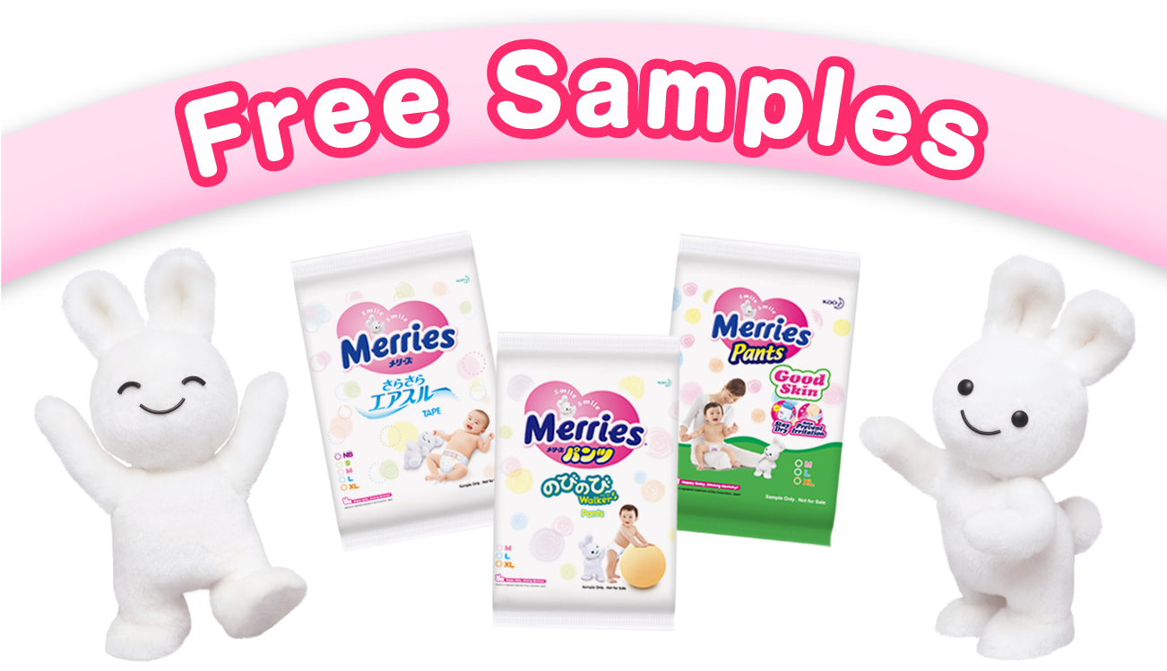 - Free sample for Merries Tape diapers is available in sizes NBx3s, Sx3s only.