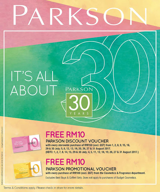 Parkson Malaysia Free Voucher Discount Offer 30th Anniversary Promotion