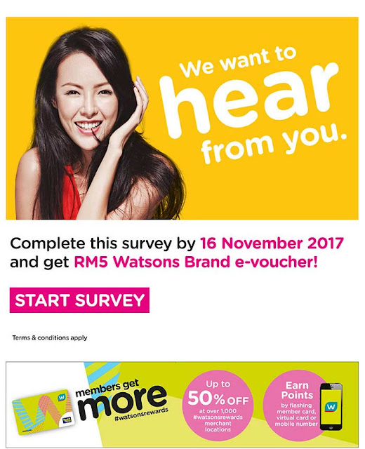 Watsons Malaysia Watsons Shopper Survey 2017 Free Brand e-Voucher Promotion