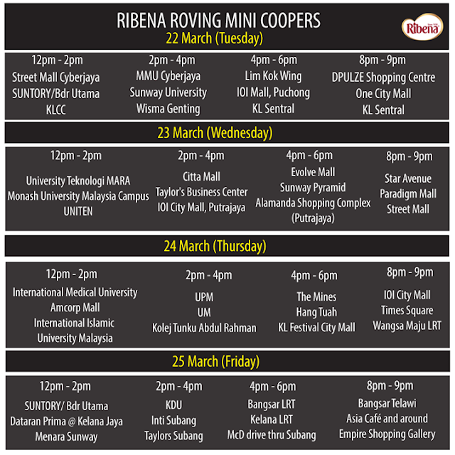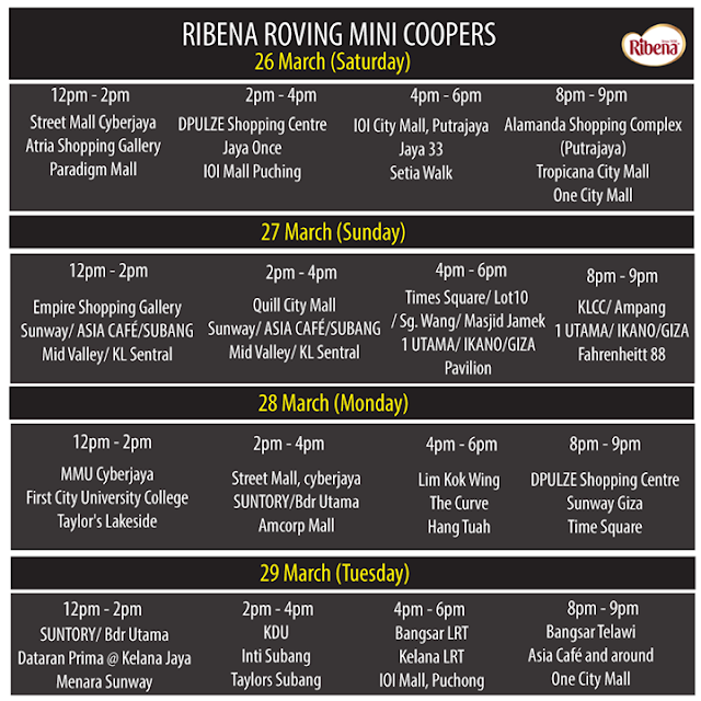 What are you waiting for? Come join us at the selected areas to enjoy our #AlwaysGood natural taste of blackcurrants!Ribena Roving Mini Cooper