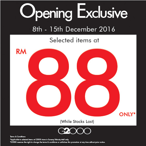 G2000 Selected Items RM88 Only @ Sunway Velocity Mall 8 - 15 December 2016