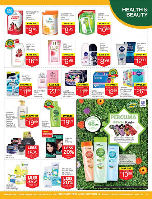 Enjoy these amazing deals for health and beauty products from 7th Sep to 4th Oct 2017 only at Giant! Valid in Giant Peninsular Only. #GiantMY