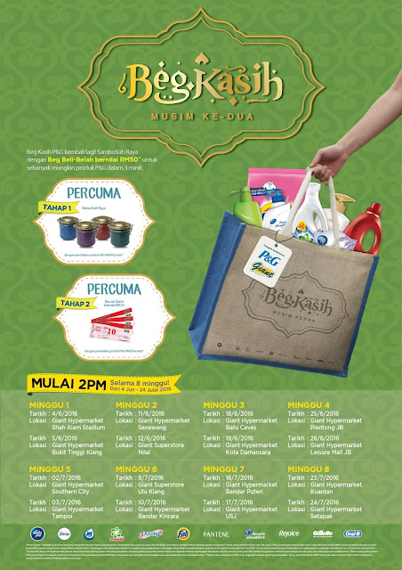 Beg Kasih P&G kembali lagi!Sambutlah Raya dengan Beg Beli-Belah bernilai RM50^ untuk sebanyak mungkin produk P&G dalam 3 minit.