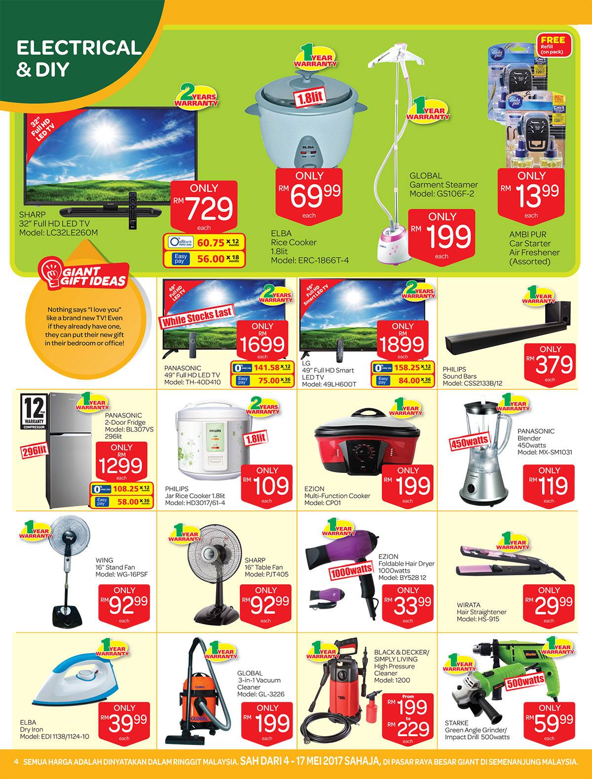 4th-17th May Promotion (Peninsular Malaysia Only): Head down to your nearest Giant and get awesome promotions on your favorite products and much more! Valid in Peninsular Malaysia from 4th-17th May 2017! :)Giant Catalogue Discount Promotion (4 - 17 May 2017)