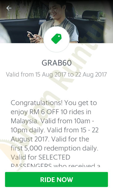 You read this first here. Please like Durian Runtuh Facebook page and follow Harga Runtuh Twitter to receive more Grab promo code & latest Uber free rides discount offers!