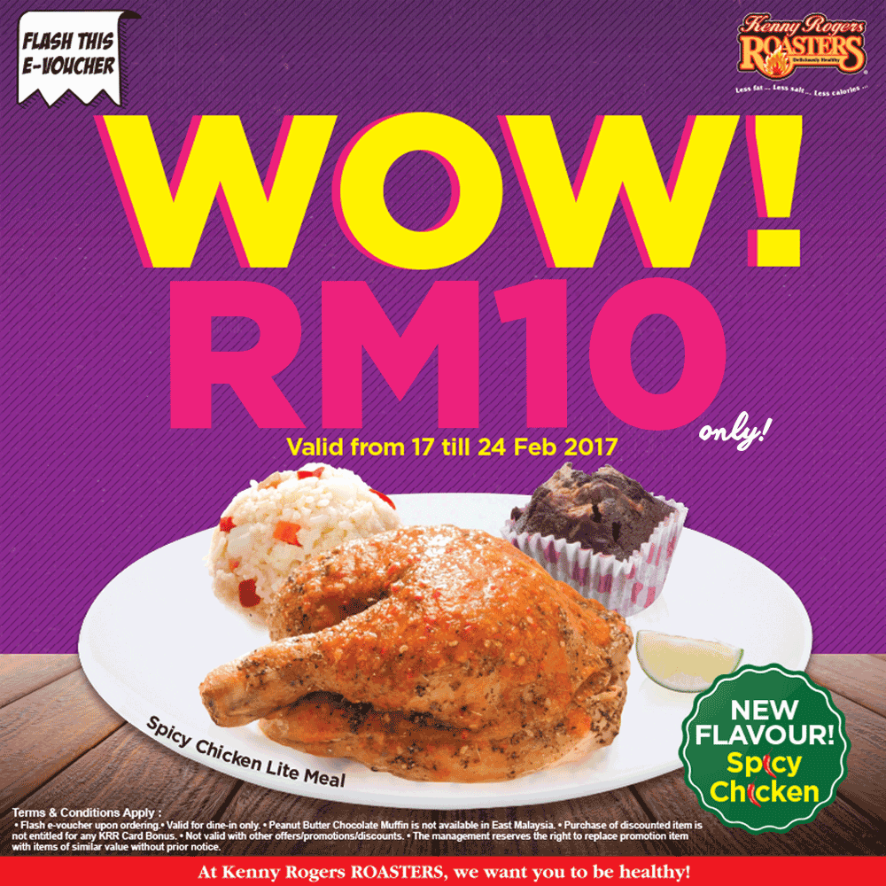 Kenny Rogers ROASTERS RM10 Spicy Chicken Lite Meal E-Voucher Until 24 February 2017