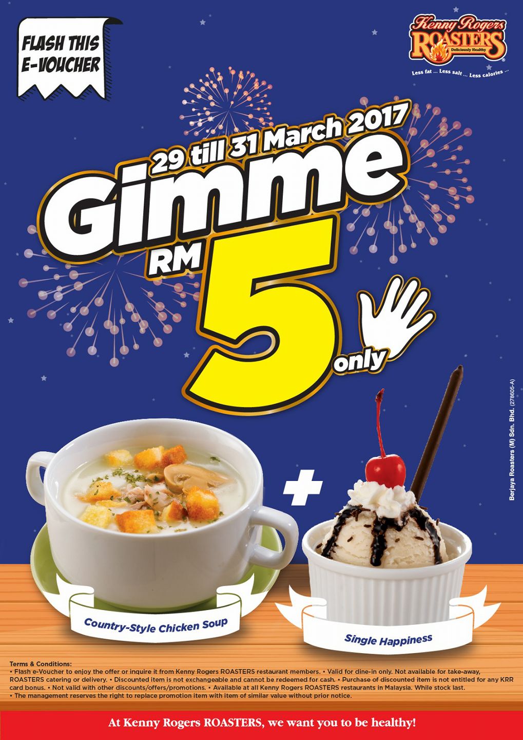 Kenny Rogers ROASTERS Malaysia E Voucher Country-Style Chicken Soup + Single Hapiness Ice Cream Offer Discount Promotion