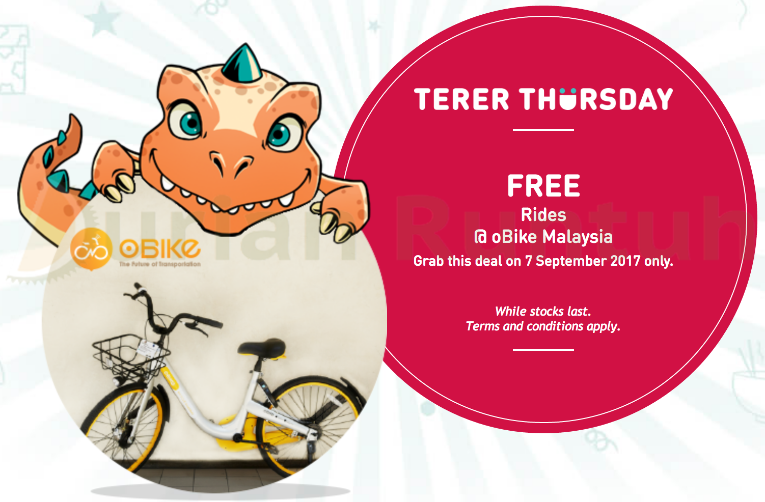 This week’s TERER Freebie: FREE Rides @ oBike Malaysia- Grab this deal on 7 September 2017 only.