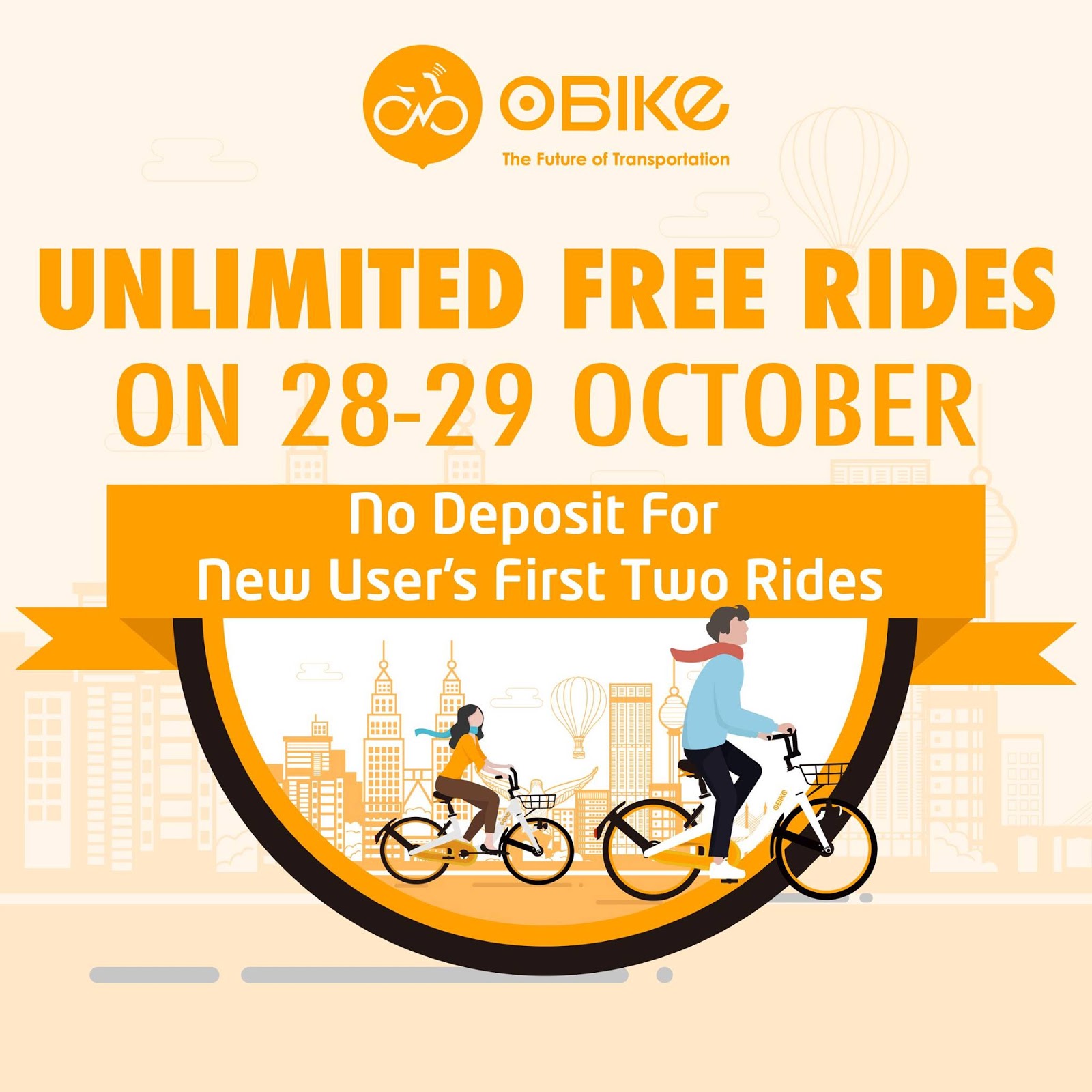 Have an oBike weekend! Enjoy unlimited trips all day long, no promo code needed!New to oBike? Take your first 2 trips without deposit! #oBikeFreeRides #bikesharing #transportation #lowcarbon