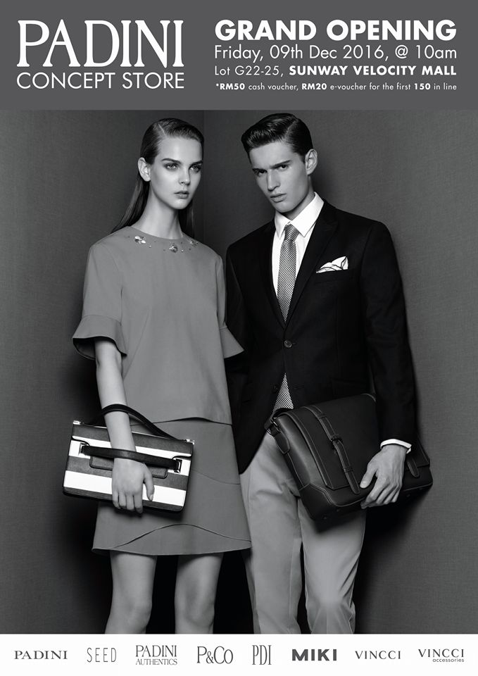 We are excited to announce the grand opening of Padini Concept Store, Sunway Velocity Mall, this Friday, December 9th @10am! To celebrate our continued growth, we're giving away RM50 cash vouchers and RM20 e-vouchers to the first 150 customers in line! We hope to see you there!You can find us at: Lot G22-25, Sunway Velocity Mall