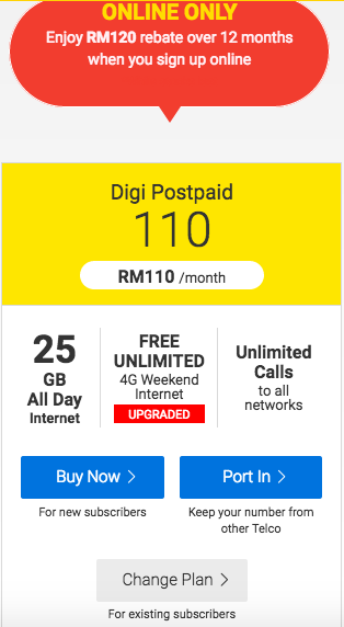 Digi Malaysia Online Exclusive Promotion: Digi Postpaid 110 Cash Rebate RM120 Discount