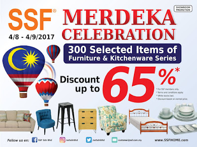 Celebrate Merdeka with all SSF Sdn Bhd300 selected items of FURNITURE & KITCHENWARE discounts up to 65%