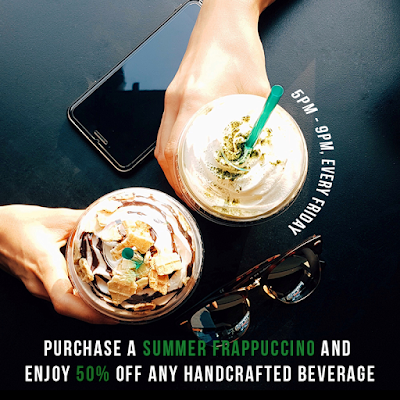 Starbucks 50% OFF Any Handcrafted Beverage When You Buy Summer Frappuccino 5PM - 9PM Every Friday Until 28 July 2017