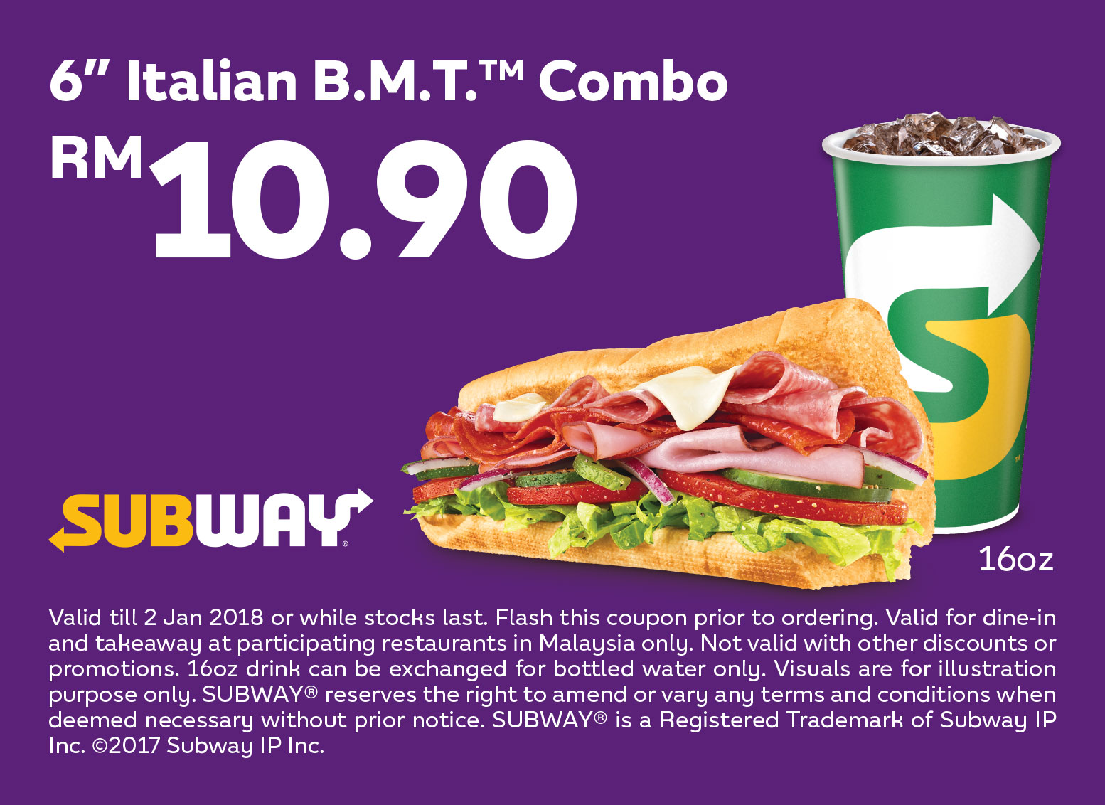 | Subway e-Coupon: 6" Italian B.M.T. Combo RM10.90 |