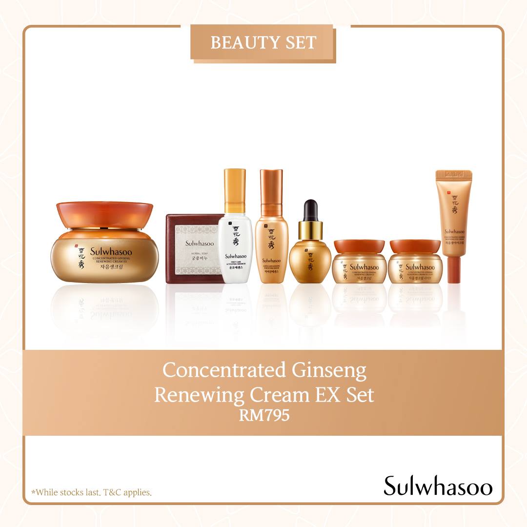 Concentrated Ginseng Renewing Cream EX Set (RM795) consists of Concentrated Ginseng Renewing Cream EX 60ml & a 7-piece travel kit* While stocks last. T&C applies.