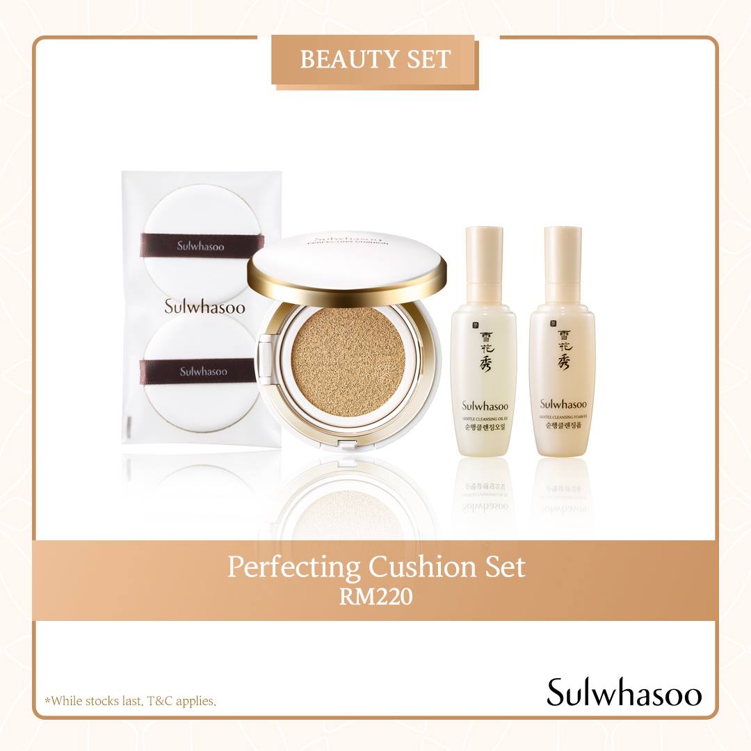 Perfecting Cushion Set (RM220) consists of Perfecting Cushion 15g*2, & a 3-piece travel kit* While stocks last. T&C applies.