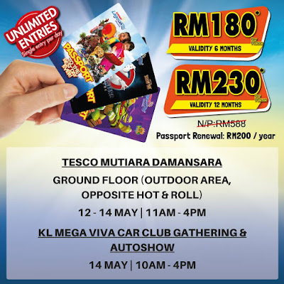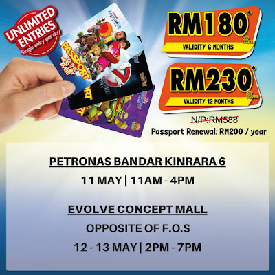 Passport To The Best Day Ever allows you to enjoy 365 UNLIMITED ENTRIES to ALL 6 Parks with exciting rewards and benefits! Not only that, there is no blackout dates, valid on weekends, public holidays and even school holidays! Here's the promotional prices: RM180 (6 Months) | RM230 (12 Months) | Passport Renewal RM200 / yearUnlimited Entries Single Entry Per Day.