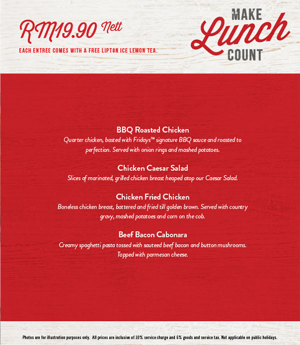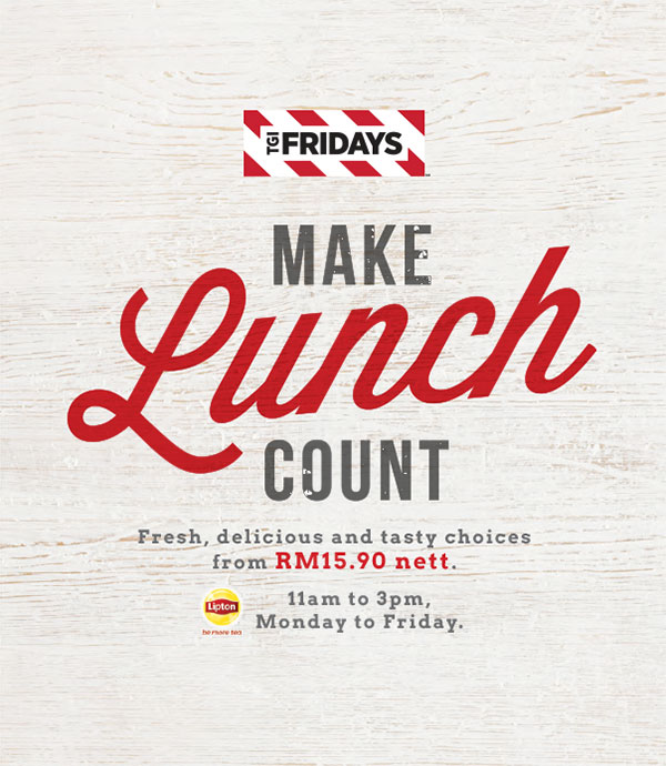TGI Fridays Malaysia Make Lunch Count Menu Weekday Lunch Hour Discount Offer Promotion