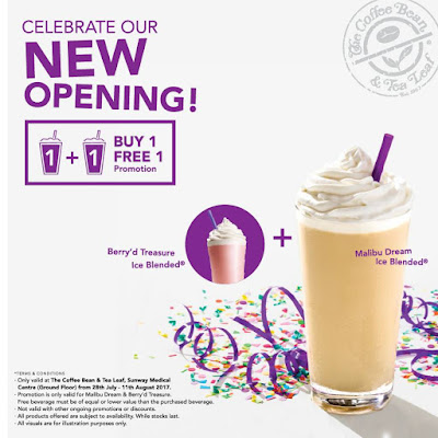 The Coffee Bean & Tea Leaf Buy 1 Free 1 Ice Blended Beverage @ Sunway Medical Centre Until 11 August 2017