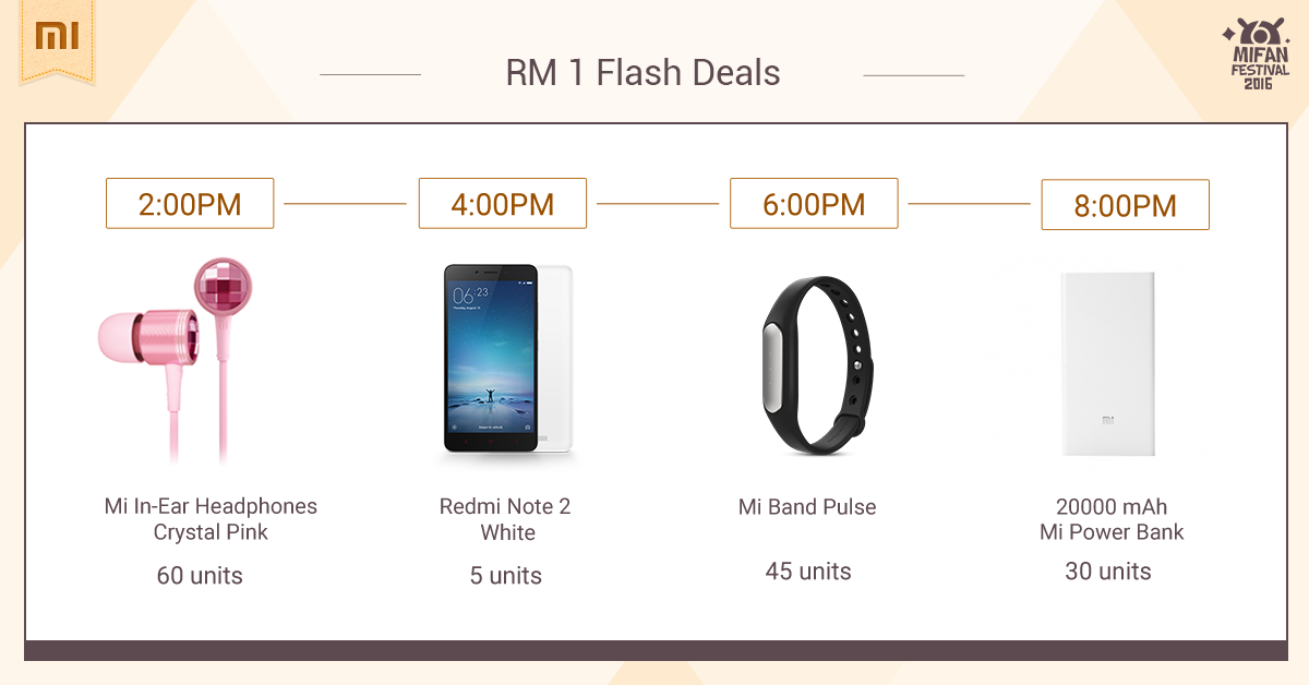Today Only Mi Flash Deals: RM1 Redmi Note 2 White, RM1 20000 mAh Mi Power Bank, Mi In-ear Headphones Crystal Pink, RM1 Mi Band Pulse 6 April 2016