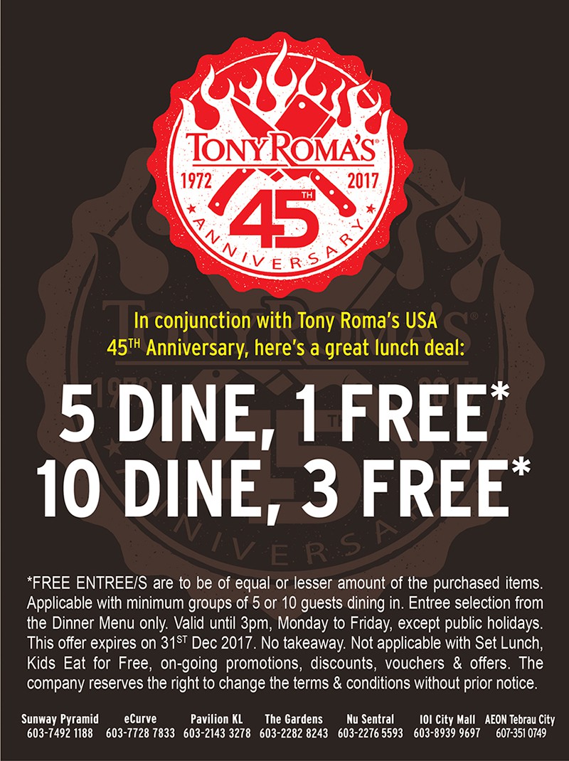 This is a companion discussion topic for the original entry at http://harga.runtuh.com/2017/03/tony-romas-free-entree-dine-in-lunch-deal.html