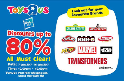 Starting this Friday, immerse yourself with the Hasbro Clearance Sale. Snag discounted deals UP TO 80%!Date: 7 July until 16 July 2017 Time: 10am - 10pm Location: Pearl Point Shopping Mall, 2nd Floor Event Hall