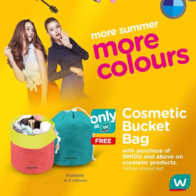Link to Watson More Sale! CatalogueFREE Watsons Cosmetic Bucket Bag With RM100 Minimum Purchase of Cosmetic Products