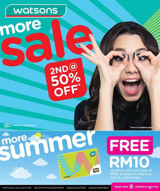 Watsons Malaysia More Sale 2nd Item Half Price Free RM10 Cash Voucher Discount Offer Promotion