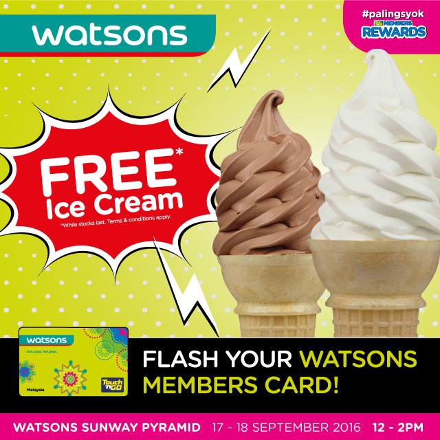 This is a companion discussion topic for the original entry at http://harga.runtuh.com/2016/09/watsons-members-rewards-free-ice-cream.html?m=0