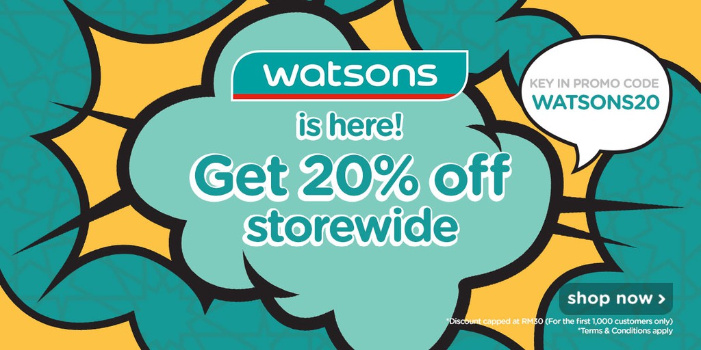 Get 20% OFF store wide using the Shopee promo code: WATSONS20 when you shop with us!Maximum discount capped at RM30 for the first 1,000 customers only.